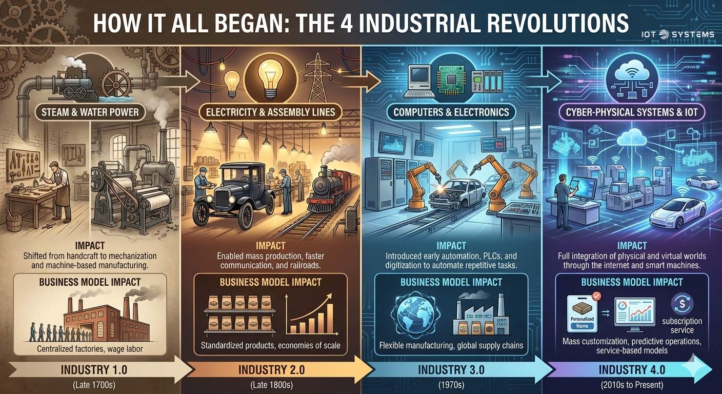 The history of industrial progress is marked by four distinct periods of monumental change: