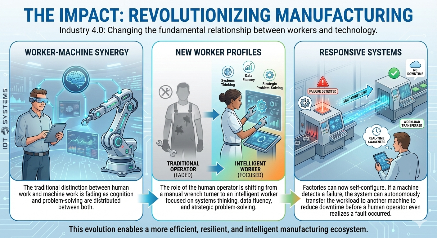 • Responsive Systems: Factories can now self-configure. If a machine detects a failure, the system can autonomously transfer the workload to another machine to reduce downtime before a human operator even realizes a fault occurred.